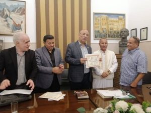 وذلك فى تمام الساعةالرابعة من مساء أمس الاربعاء الموافق 23 إبريل 2025م فى قاعة الندوات بمقر النقابةالعامة لاتحاد كتاب مصر بالزمالك و هى الآحتفالية ذات الخصوصية الوطنية التى شارك فيها الكاتب اللواء أحمد فهمى عبدالوهاب والكاتب الصحفى أبن سيناء عياد بركات والفنان التشكيلى والكاتب والسيناريست أحمد فاروق الهجين والشاعر والآذاعى الكبير السيد حسن .نائب رئيس النقابة العامة لاتحاد الكتاب . وأبن رفح الخالدة الشاعر إبراهيم أبوفايد السواركة الذى جاء خصيصا برفقة صديقيه شاعرا المليون الشاعر العمانى احمد خليفك سالم البوسعيدى . شاعر المليون .والشاعر العمانى بدر عبدالله الخروصى .والشاعر الغنائى أسامة عيد . وعاشق البادية الحاج سعيد عبدالفتاح بدوى . والصحفى حسام حفنى وابن سيناء المصرفى هاشم عياد والكاتبة عزة ابوالعز والعديد من محبى وعاشقى ادب البادية المصرية .